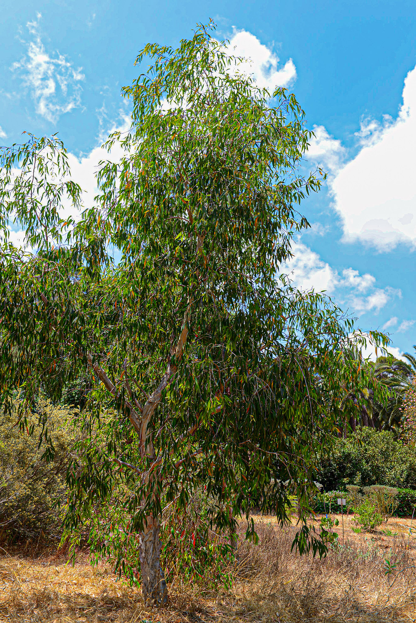 עץ גבוה ירוק־עד בעל גזע זקוף וגבוה, בעל קליפה עבה מתקלפת בצבע לבן, דומה לספוג. היא מתקלפת ברצועות גדולות וניתן להשתמש ברצועות ״ספוג״ אלה למטרות שונות. ענפי השלד צומחים זקוף, וענפי משנה בעלי צימוח שמוט כלפי מטה והם מעניקים לעץ מופע בכותי. העלים סרוגיים, מאורכים, דמויי אזמל אורך העלה 27-7 ס״מ ורוחבו 4-0.5 ס״מ. לאורך העלה עוברים 9-5 עורקים דמויי חרמש.