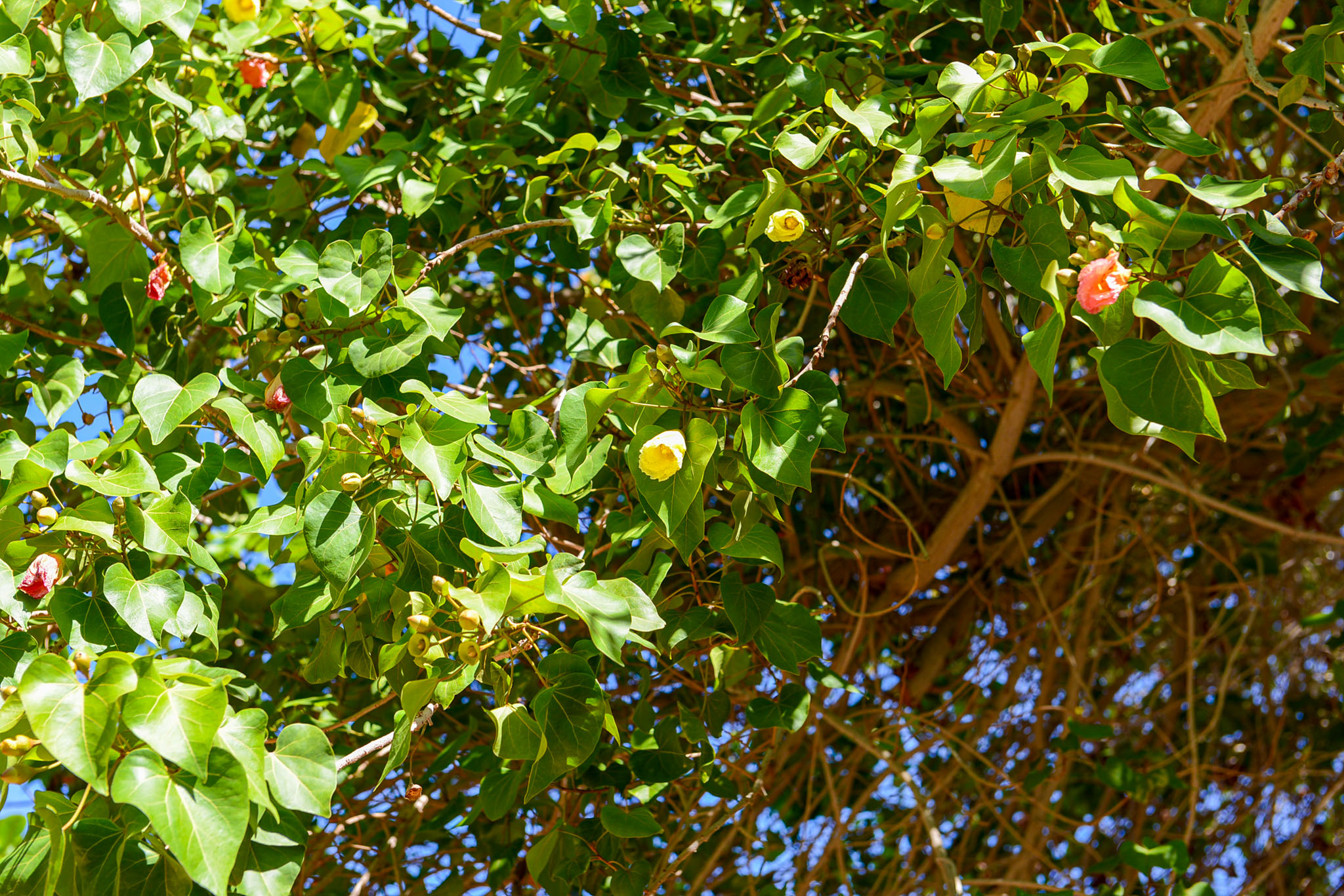 עץ וותיק מומלץ ונשכח. גדל עד 10 מטר גובה, בדרך כלל נמוך יותר. גזע העץ קצר ומתפצל לענפי שלד צדדיים, הגדלים לעיתים בצורה מפותלת או מכופפת. קליפת הגזע מחוספסת, בצבע אפור ובגיל בוגר היא מחורצת. כותרת העץ רחבה וצפופה, הענפונים בעלי ליבה ספוגית יחסית, והקליפה שלהם חזקה וסיבית כאשר מקלפים אותה. העלים בעלי פטוטרת, ערוכים בסידור ספירלי. טרף העלה עבה יחסית ודמוי עור בצורת לב, בגודל 7–23 × 5–16 ס״מ, בצבע ירוק בהיר. מבסיס העלה יוצאים העורק המרכזי ובדרך כלל ארבעה עורקים צדדיים עיקריים ושניים משניים. הפרחים גדולים דמויי פעמון, בודדים בחיק העלים, בגודל כ־6–7.6 × 7.6 ס״מ, עם עוקץ באורך 2.5–10 ס״מ. ישנם שלושה עלי מעטפת חיצוניים (epicalyx) הנראים בעיקר בניצני הפרח הבוגרים ולעיתים גם בפרחים פתוחים. הגביע דמוי כוס עם שיניים זעירות, ונפרש עם התפתחות הפרח. כותרת הפרח גדולה כ־6–7 ס״מ, צהובה בעיקרה עם גוון אדמדם בבסיס, ולאחר ההאבקה משנה צבעה לוורוד או לאדום מלא. הפרי פחוס כדורי, בקוטר 25–45 מ״מ. בארץ כמעט ולא חונט זרעים. העץ גדל במגוון קרקעות, עמיד לשמש מלאה, לרוחות חזקות וליובש, וכן לרסס מי מלח ואף להצפת השורשים במי ים.